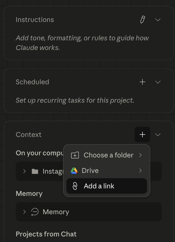 On the right of Cowork, you can add more context by clicking the + button and Add a link.