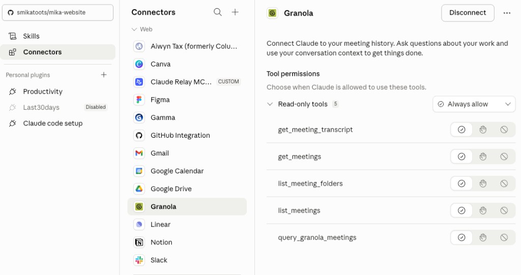 Once connected, you can ask it things like "pull the action items from my last meeting and draft a follow-up email" and it will actually do it, across your real tools. That's the shift. It stops living in a chat window and starts working inside your workflow.