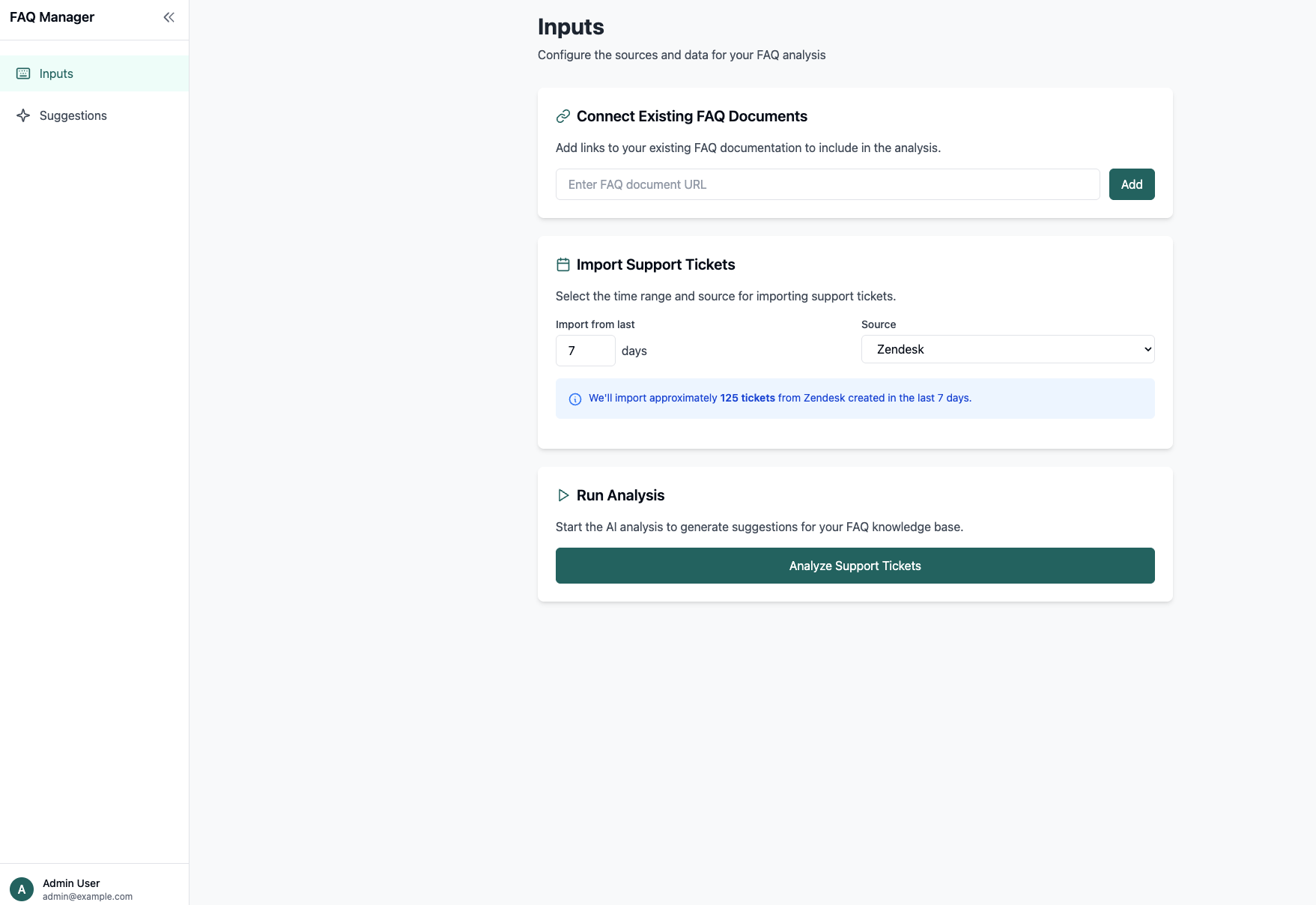 Build an AI-powered support knowledge manager that helps users refine and expand their FAQs based on actual support tickets.
