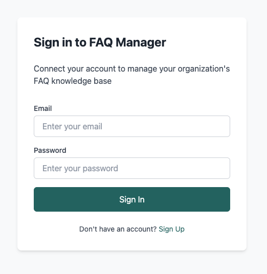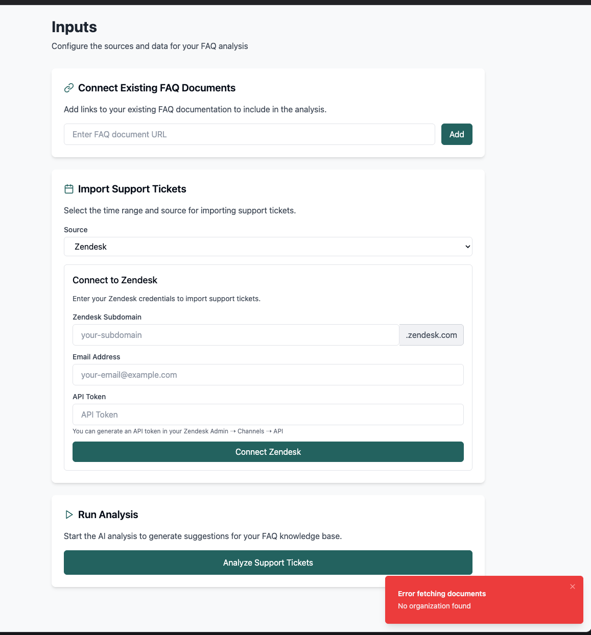 - (Stretch goal) Provide an option to connect directly to the Zendesk API to pull existing FAQ content.