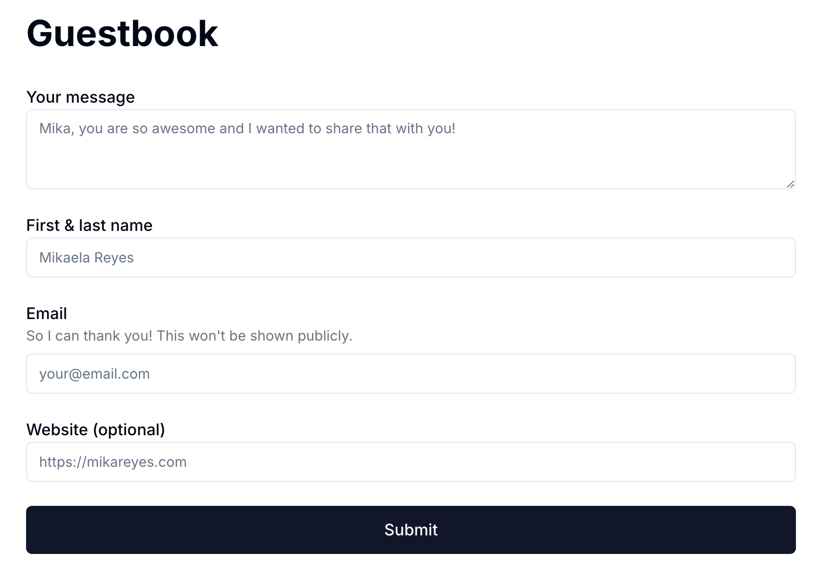 I wanted a simple Guestbook app for my personal website, inspired by Mike Karnjanaprakorn and the guestbook on his website (his even lets you draw!)
