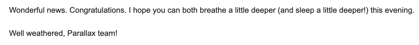 - communicated the news to our users, relaying our plan and estimated timeline. The full blog post relaying the info: https://www.withparallax.com/blog/important-update-parallaxs-path-forward
