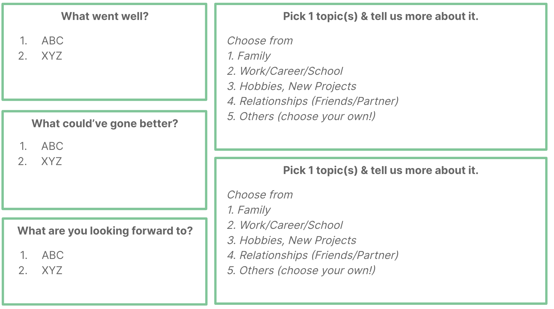 I love organizing reunions with friends who I haven't talked to in a while. I created a template for my friends and I to fill out before our reunion, and use as the tool to give our update.